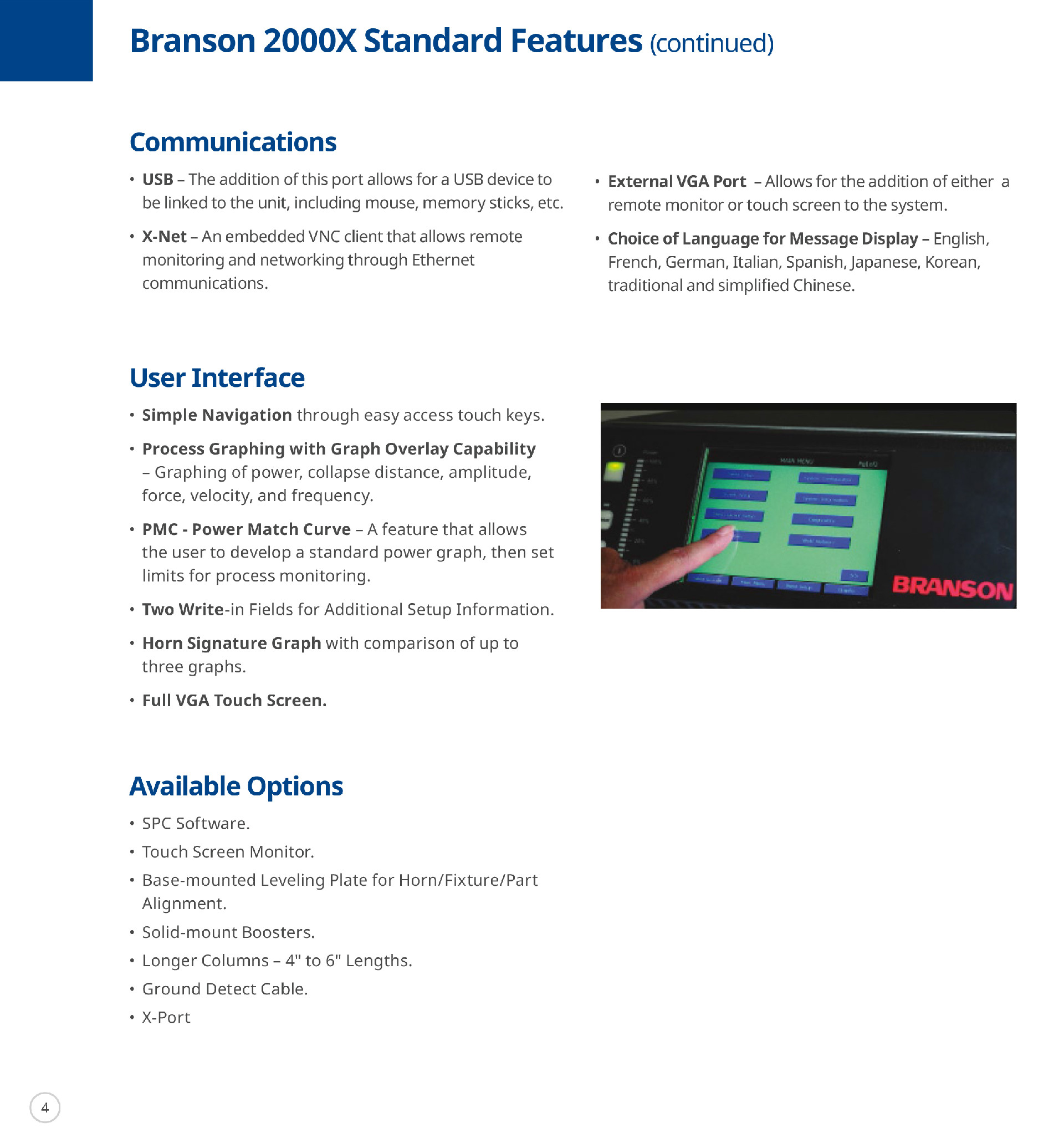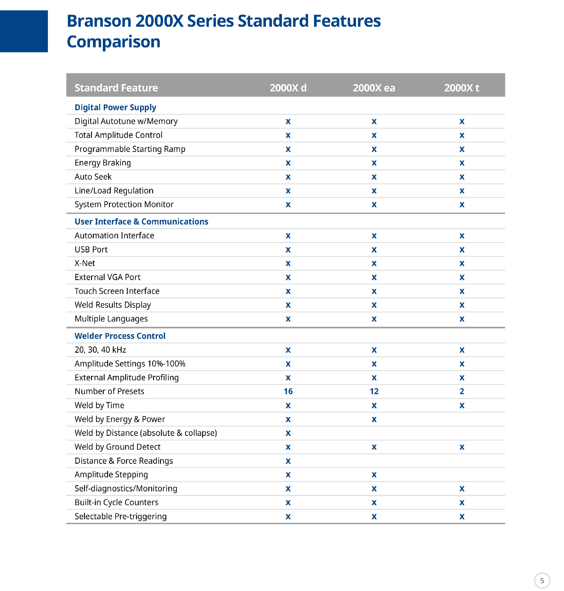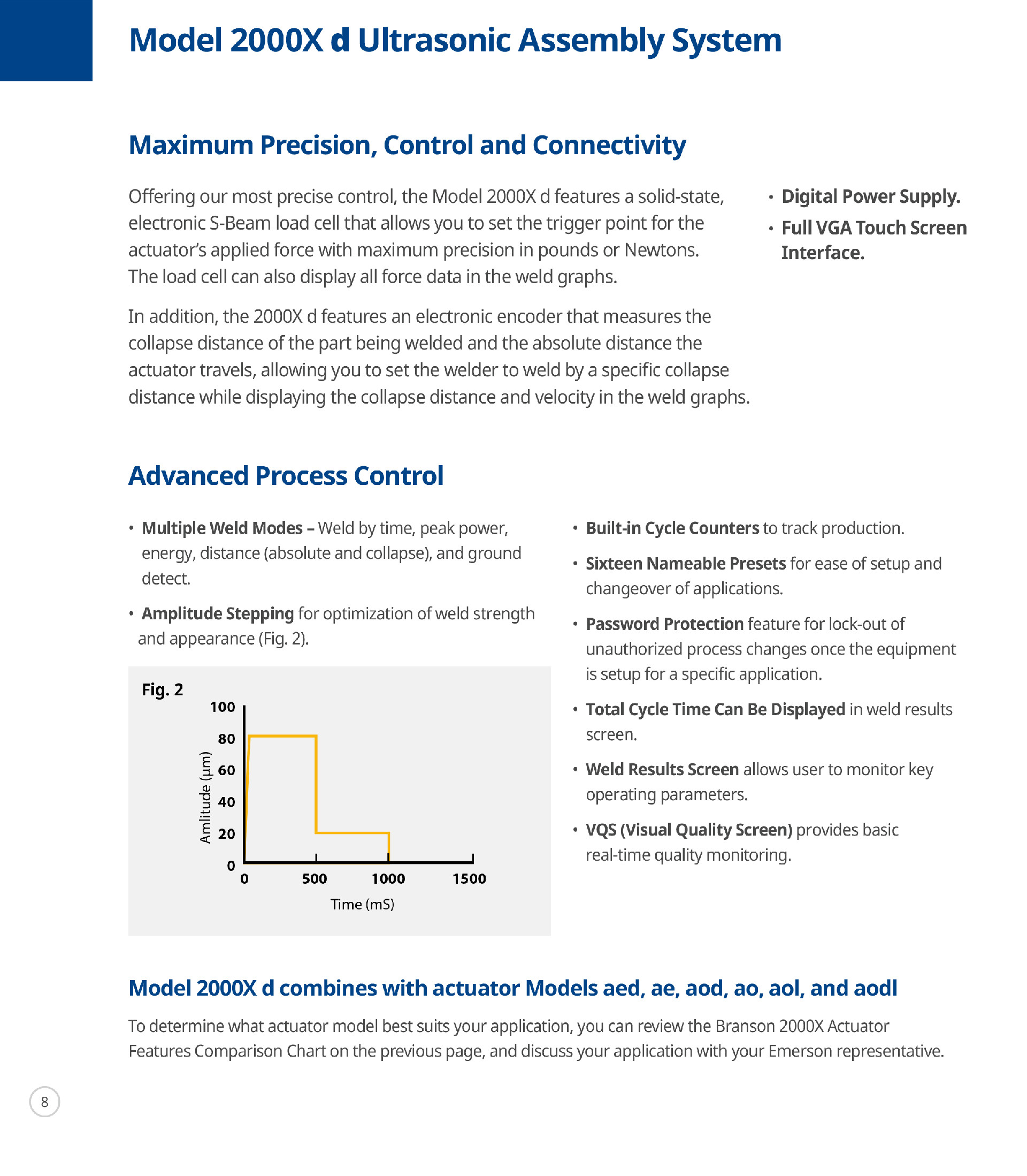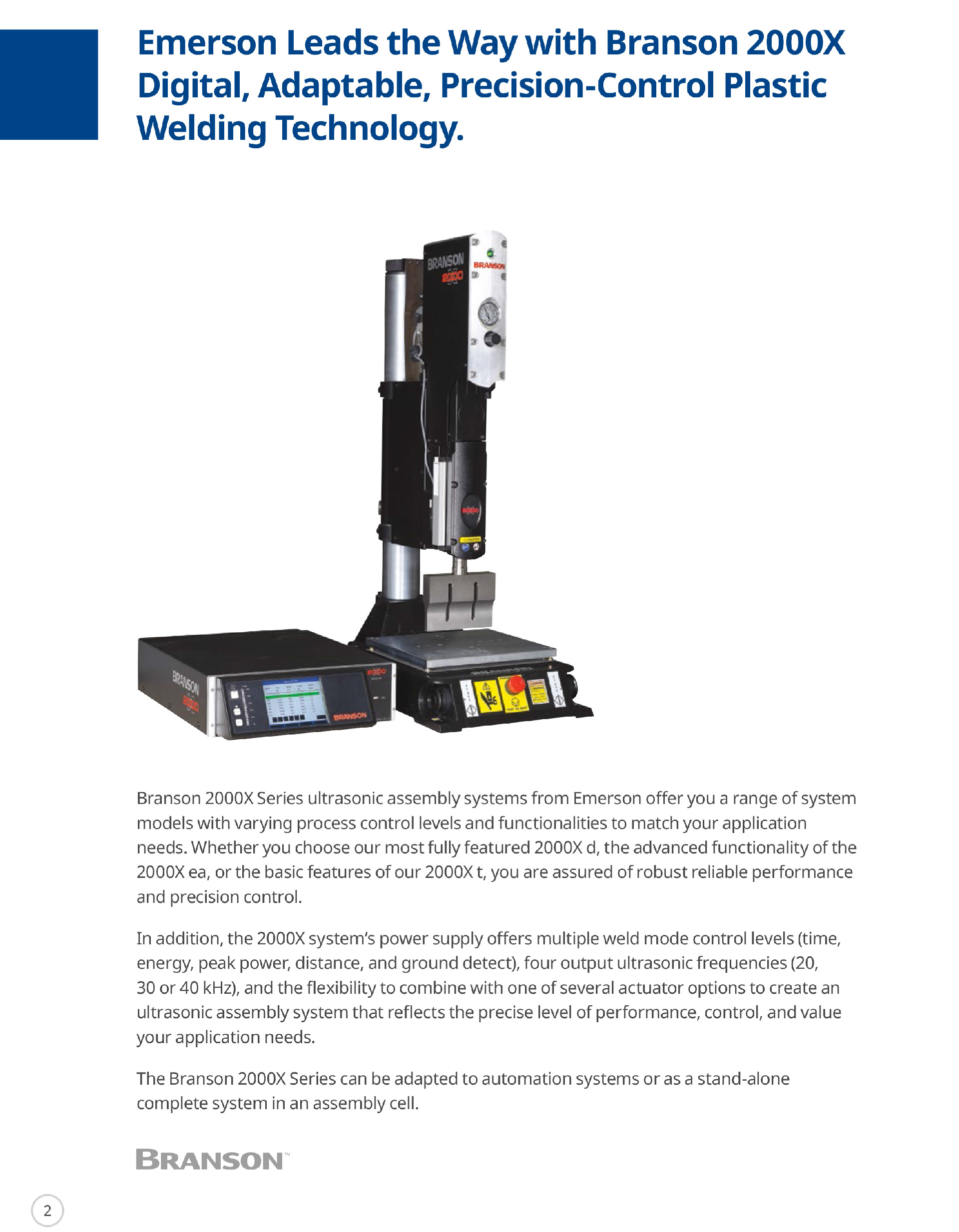 2000Xt 焊机适用于时间模式和峰值功率模式下的基础焊接。可选的地面检测套件可为切割密封应用提供便利。数字振幅控制用于微调关键应用,而带存储器的数字自动调谐能够在每次焊接结束后对频率进行全自动调节和存储。