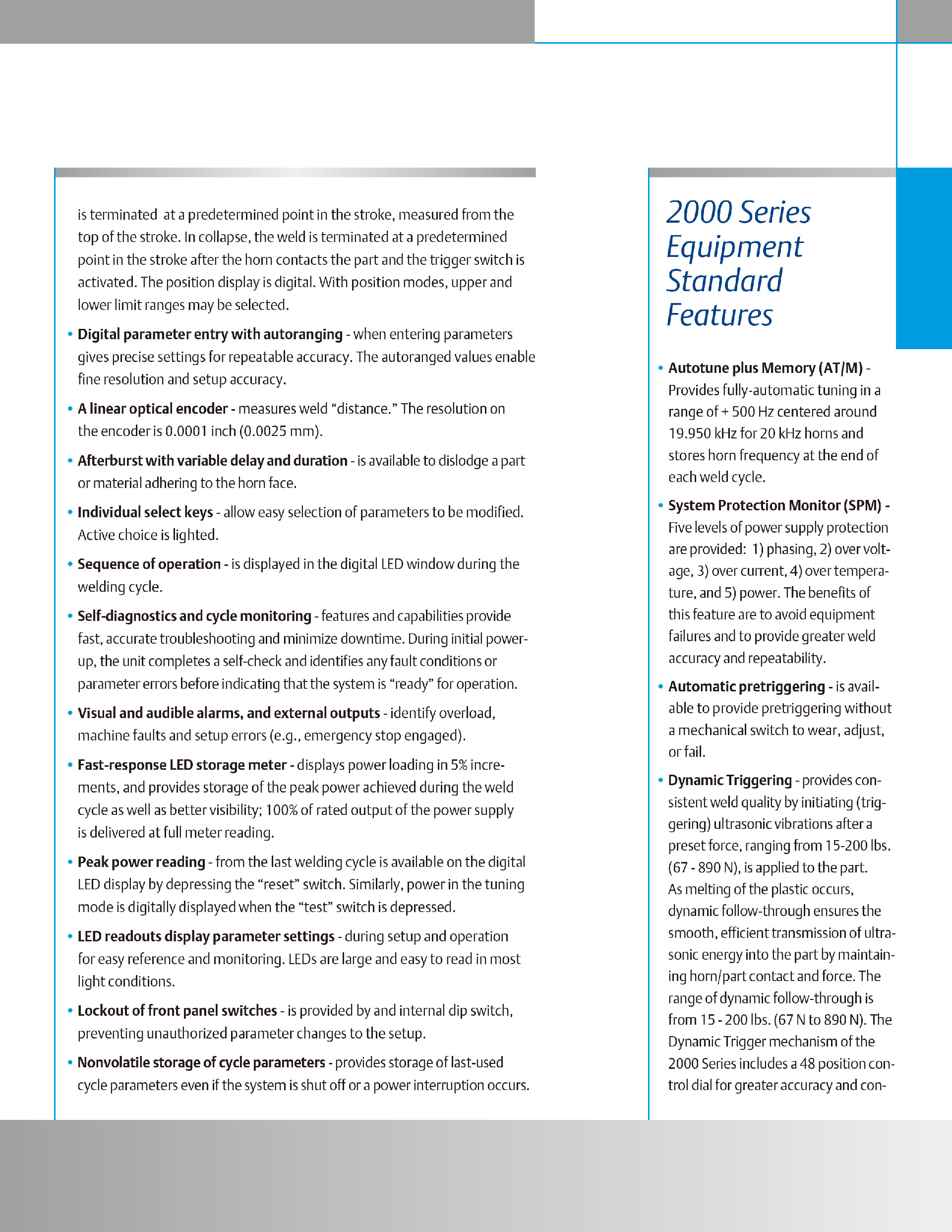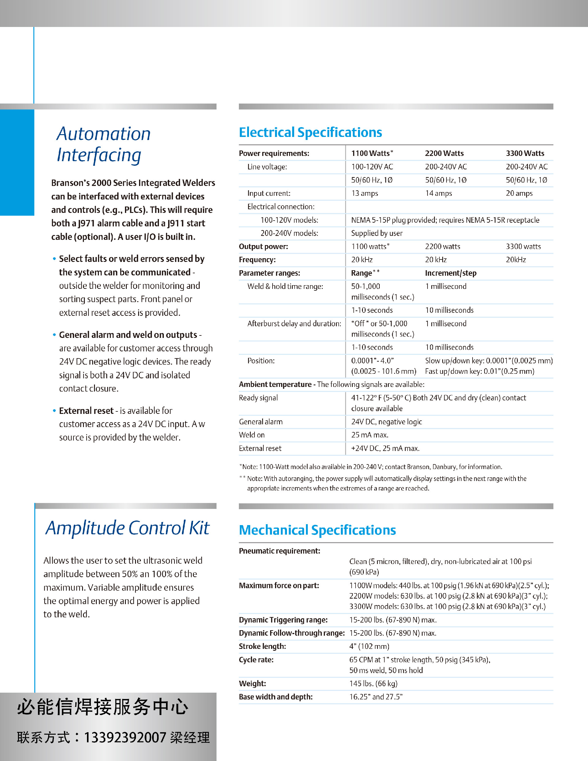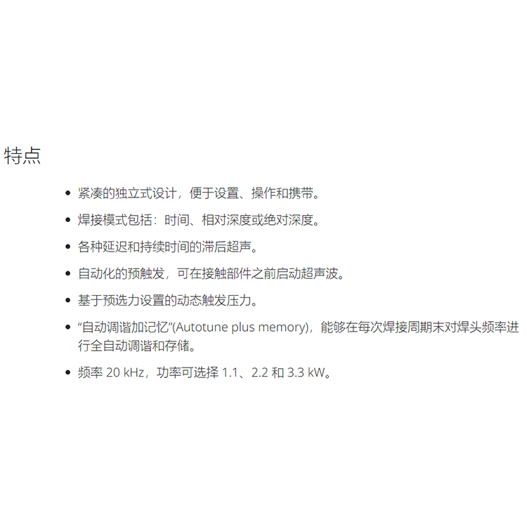 6、“自动调谐加记忆”(Autotune plus memory),能够在每次焊接周期末对焊头频率进行全自动调谐和存储。