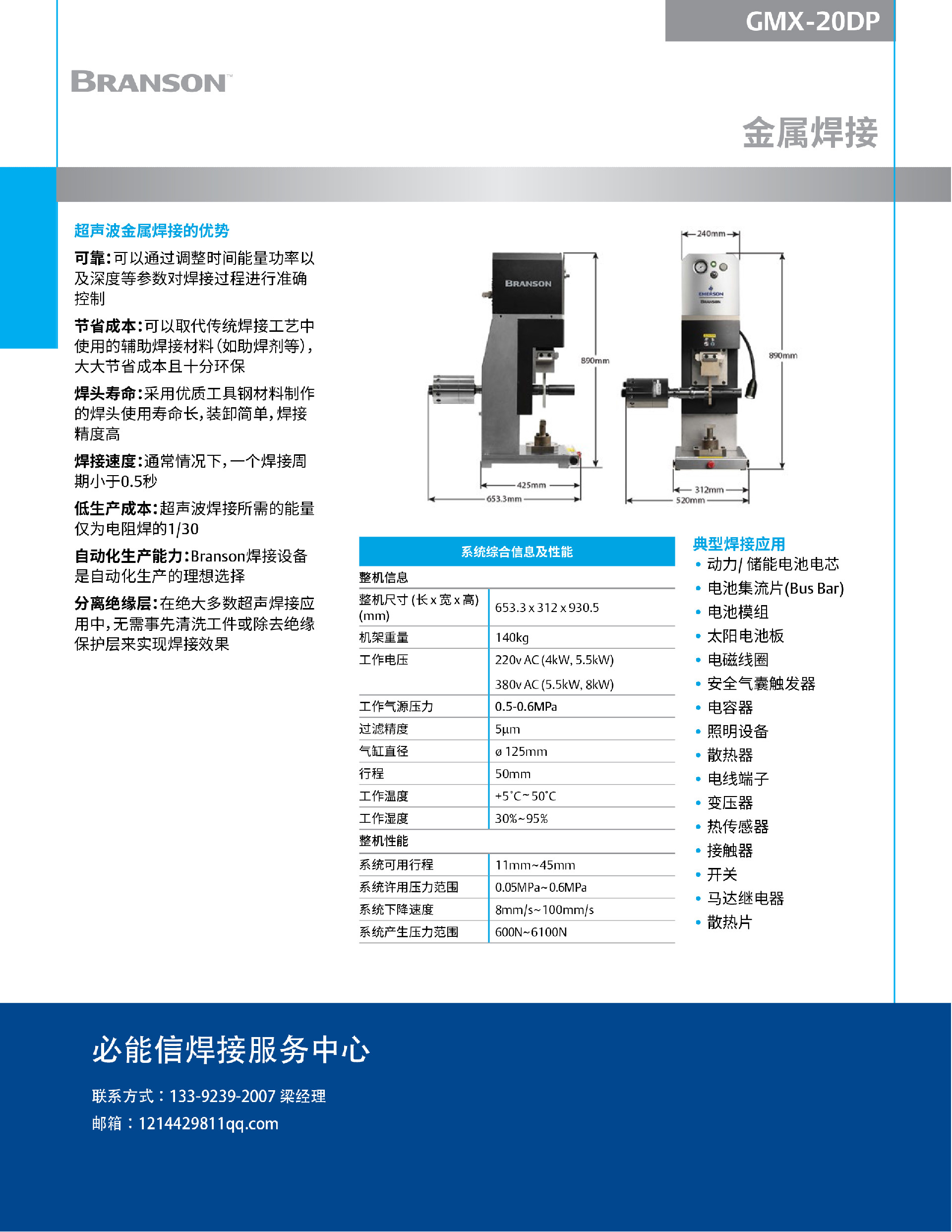 Branson GMX-20DP 必能信超声波金属点焊机