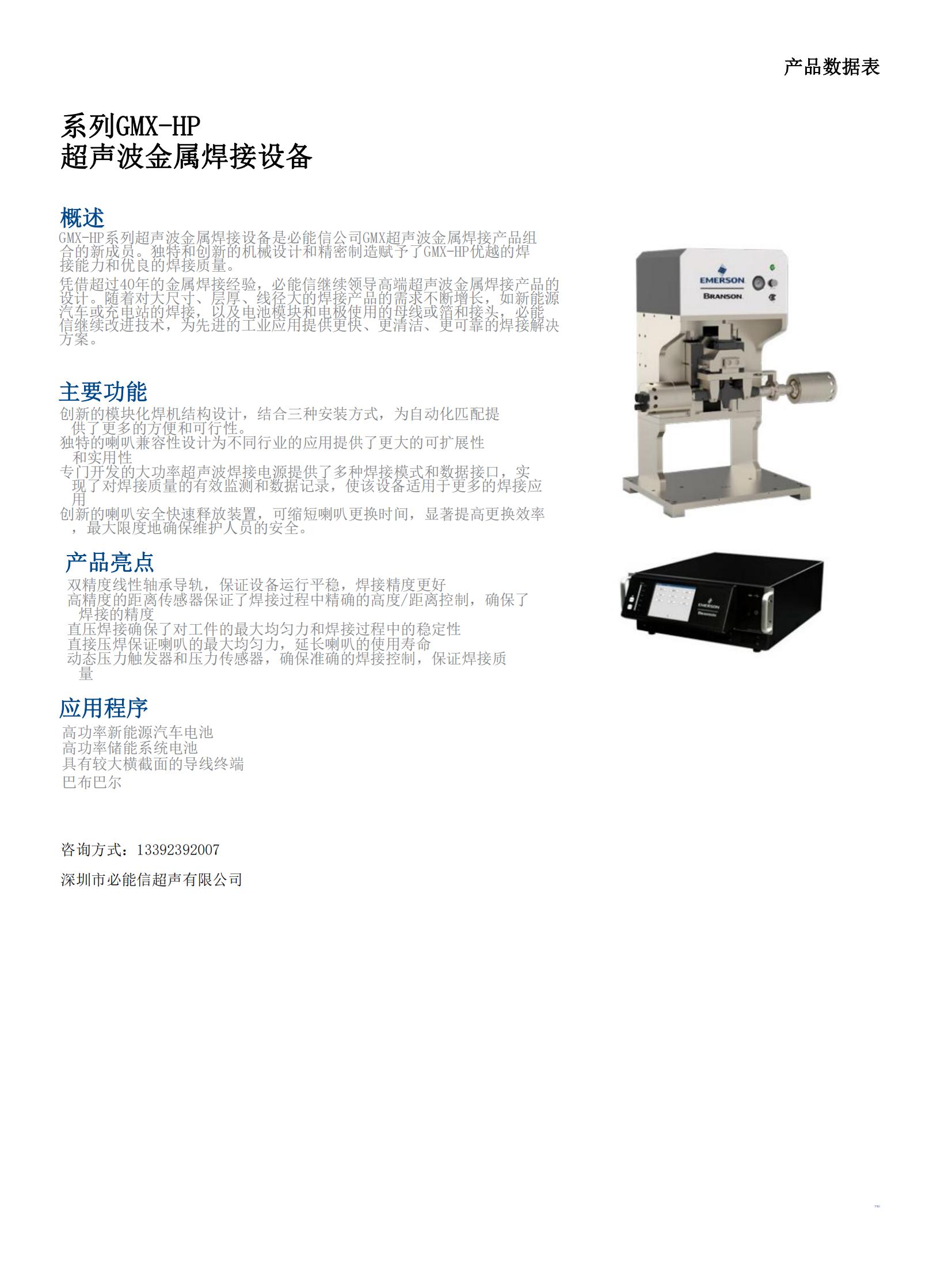 GMX-HP 是必能信 GMX 超声波金属焊接产品系列的新产品。独特而创新的机械设计和精密制造赋予了 GMX-HP 出色的焊接能力和优异的焊接质量,适用于高能量电池、大截面电线终端和母线。