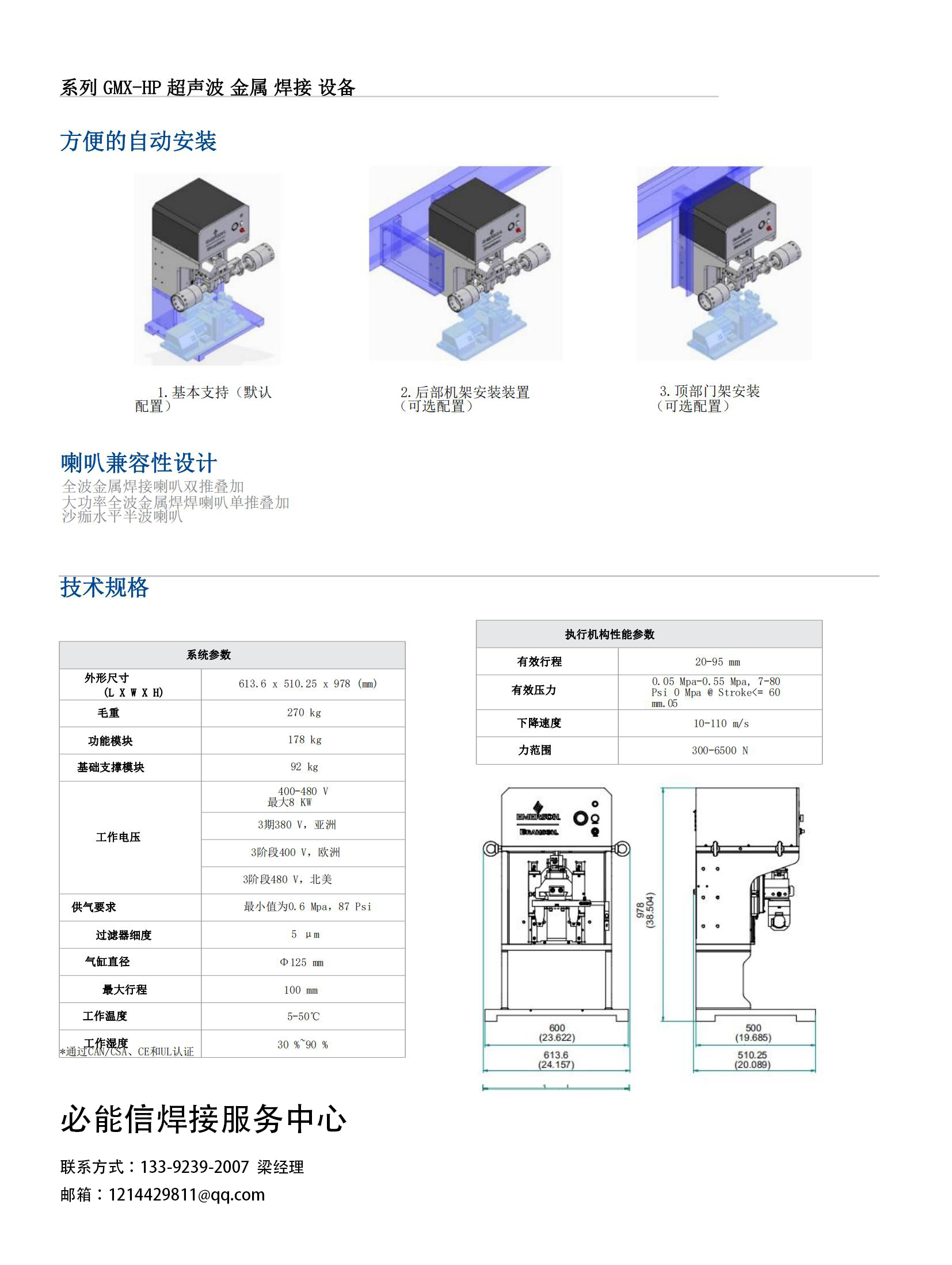 3、大功率超声波焊接电源,提供丰富的焊接模式和数据接口,实现焊接质量的有效监控和数据记录。