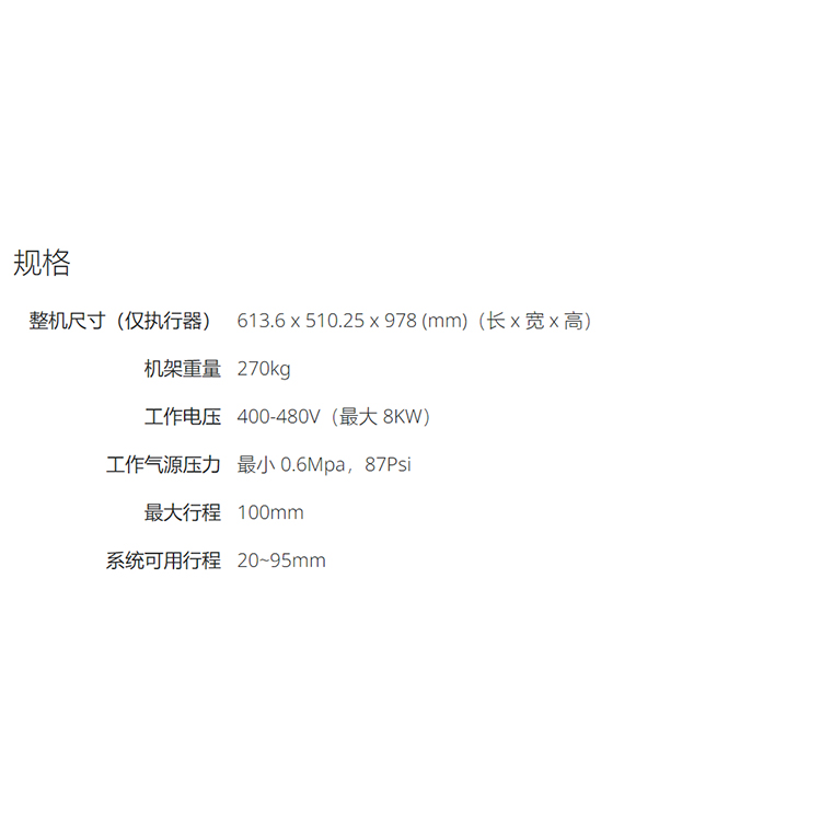 整机尺寸(仅执行器)613.6 x 510.25 x 978 (mm)(长 x 宽 x 高)