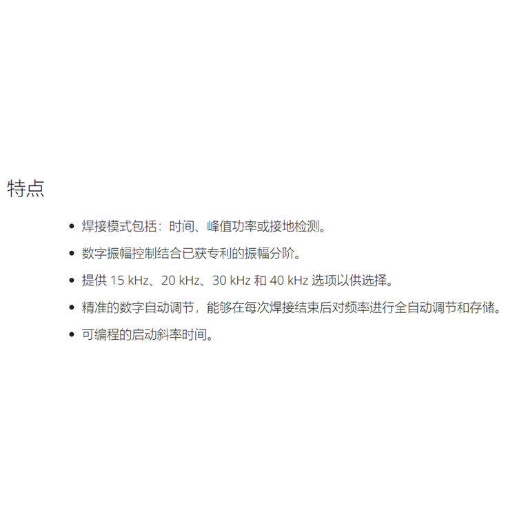 1、焊接模式包括:时间、峰值功率或接地检测。