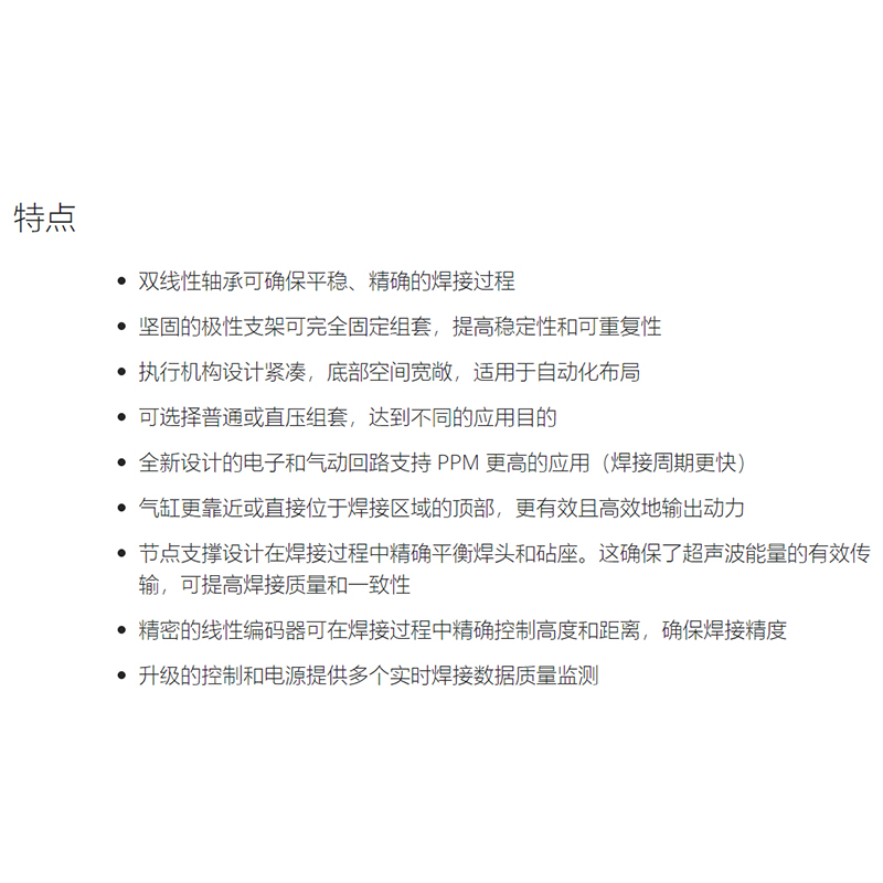 1、双线性轴承可确保平稳、精确的焊接过程