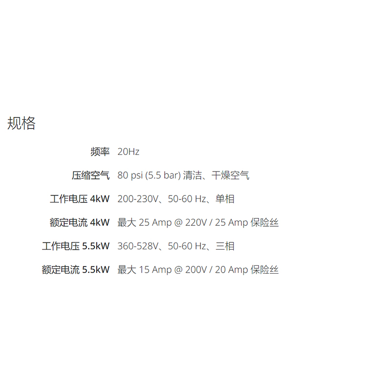 工作电压 4kW200-230V、50-60 Hz、单相