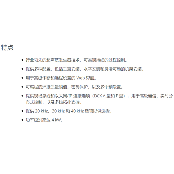 1、行业领先的超声波发生器技术,可实现持续的过程控制。
